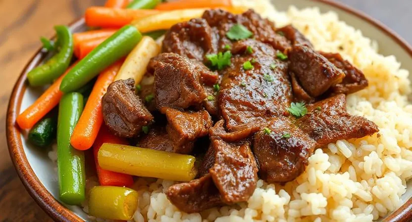 Serve hot over steamed rice, with every spoonful balancing juicy beef, veggies, and fragrant rice. Pair it with a light cucumber salad for a refreshing contrast.