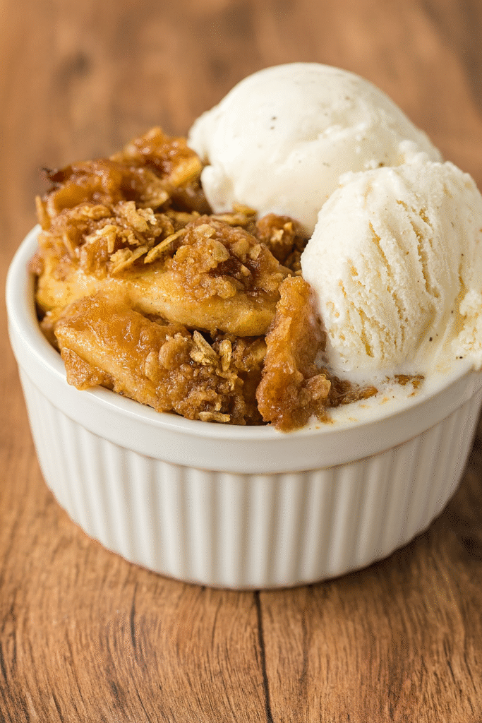 - Vanilla Bean Ice Cream: Soft, creamy vanilla ice cream melting over warm Slow Cooker Apple Crisp adds creaminess and contrast.