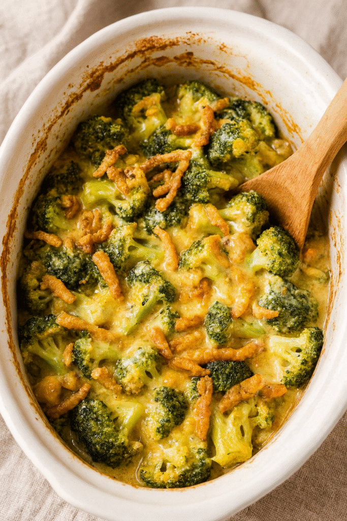 - Vegan version: Use plant-based cheese and a creamy veggie-based soup for a vegan Slow Cooker Broccoli Casserole.